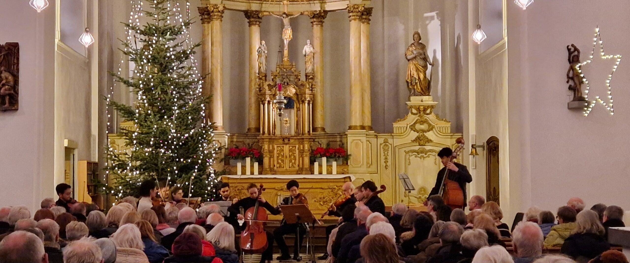Vor der weihnachtlich-festlichen Kulisse des wunderschönen Altarraums von St. Martinus in Alt-Richterich spielten elf Musiker des Euregio Chamber Orchestras unter der Leitung des grandiosen Konzertmeisters Po Fan Chen ein vielseitiges Programm.